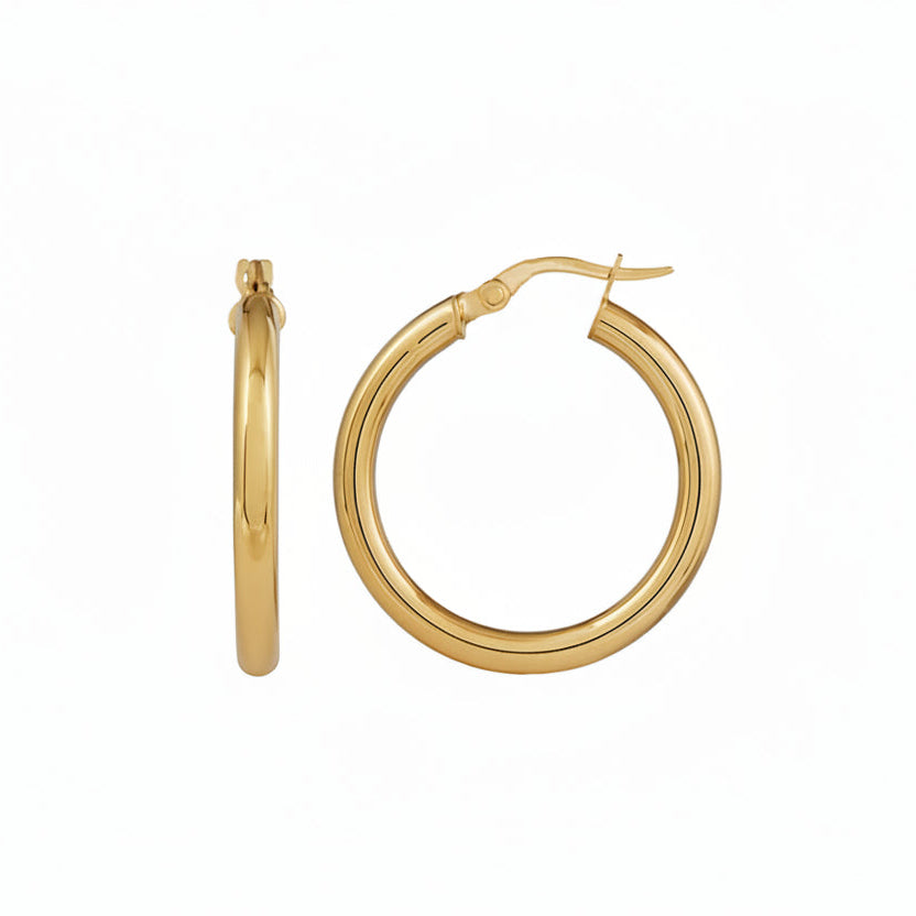 These 9ct yellow gold tube hoops offer a clean, straightforward style that works for any occasion. The size provides a noticeable presence without being too bold, while the smooth tube design highlights the natural warmth of genuine yellow gold. Perfect for everyday wear or dressing up, these hoops are a reliable choice that pairs well with any outfit.
